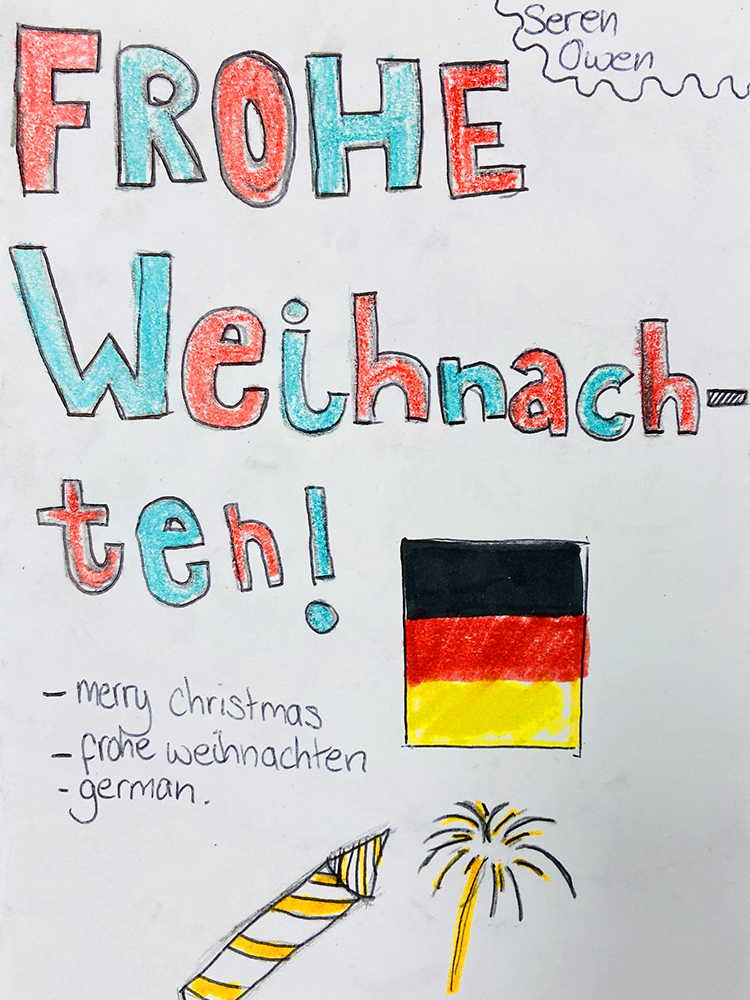 The Languages Department encouraged pupils to explore festive customs from different cultures and incorporate a foreign language into their creative card designs. Take a look at some of the designs below.
